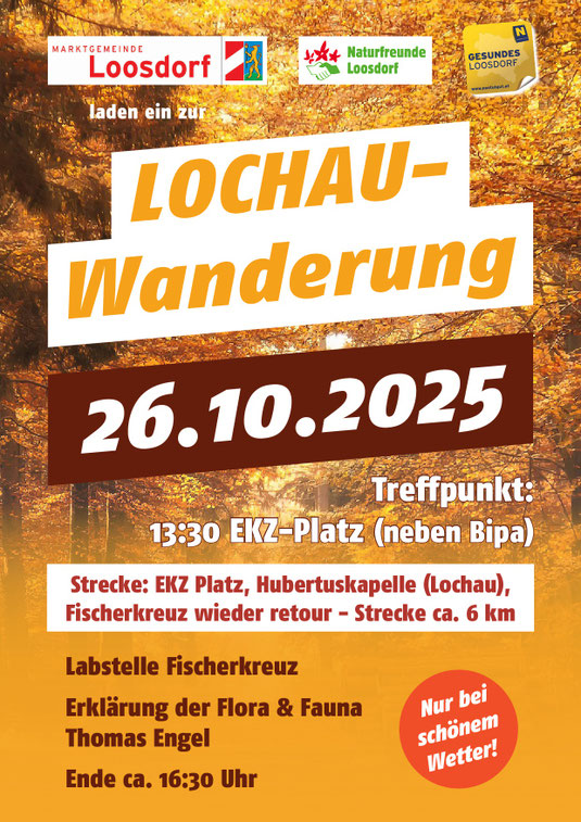 Gemeinsam mit der Marktgemeinde Loosdorf laden wir am Nationalfeiertag zu einer Wanderung in die Lochau mit Erklärung der Flora & Fauna und einer Labstelle beim Fischerkreuz.